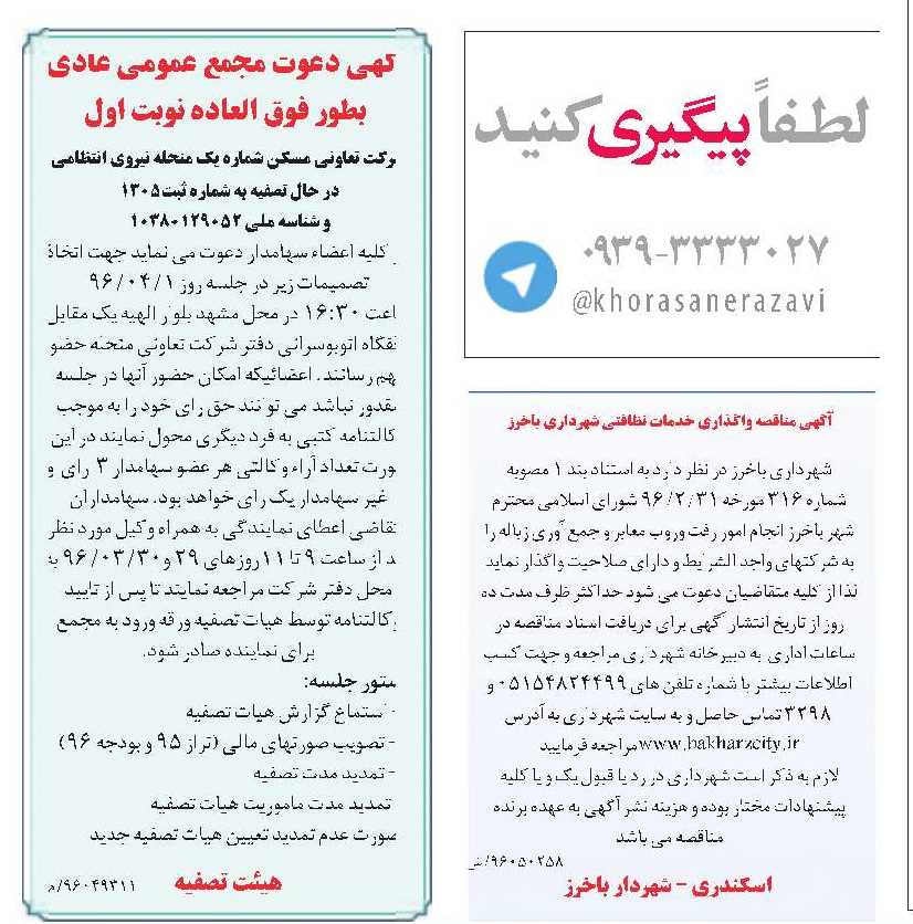 مسئولان و مدیران روابط عمومی سازمان ها می توانند پاسخ های خود به پیامک های مردم را از طریق پست الکترونیکی kho.razavi@gmail.comبهروزنامه خراسان رضوی ارسال کنند.