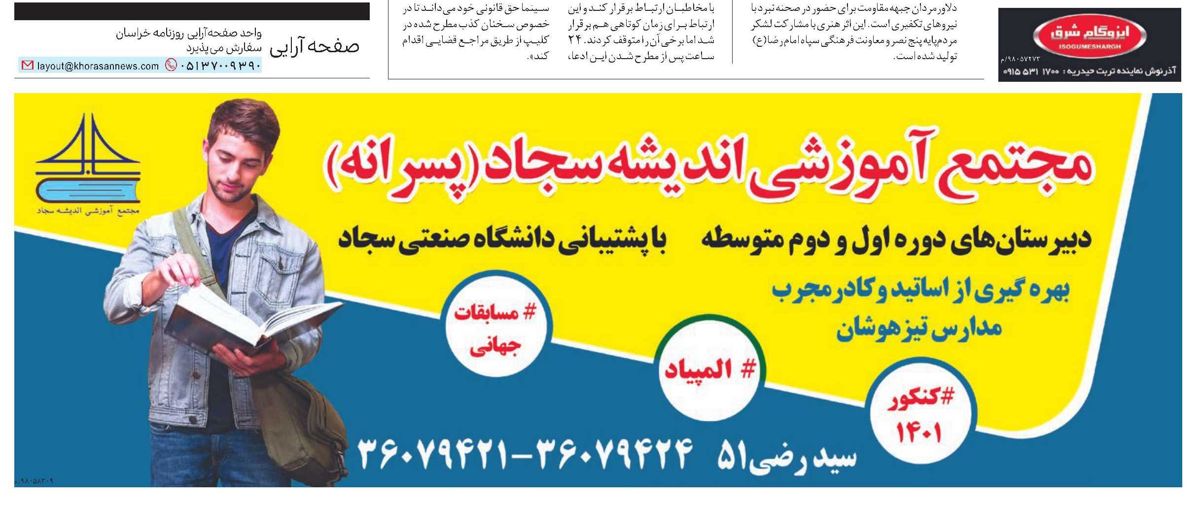 «مجیدیفر»، روابط عمومی اداره کل آموزش و پرورش استان در توضیح این کمبود و پاسخ به این شهروند، میگوید: «در نواحی1، 5، 7، تبادکان و به ویژه مناطق حاشیه ای شهر مشهد، متاسفانه این یک مشکل رایج است و در این مناطق، ما با کمبود فضای آموزشی و جمعیت زیاد دانش آموزانی که بلاتکلیف اند مواجه هستیم و رشد جمعیت همچنان در این مناطق در حال افزایش است. اگرچه در چند سال گذشته و به کمک خیرین مدرسه ساز، تمام تمرکزمان را روی حاشیه شهر گذاشته ایم و بیشتر امکانات آموزشی که به تازگی احداث شده، در همین مناطق بوده است. اما امیدواریم این روند با سرعت بیشتری پیشرفت کند. در خصوص مشکلات یادشده هم، مدیران مدارس مذکور کار غیرقانونی انجام ندادهاند و با توجه به محدوده بندی آموزش و پرورش، به اجبار باید ابتدا تمامی دانش آموزان داخل محدوده شان را ثبت نام کنند و بعد به سراغ دانش آموزانِ متقاضی خارج از محدوده برونـــد. اما این اطمینان را به خانواده های محترم میدهیم که به طور قطع به هیچ وجه هیچ دانش آموزی از تحصیل جا نمیماند.